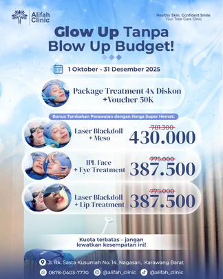 • Laser Blackdoll + Lip Treatment Rp 775.000 ➜ Rp 387.500